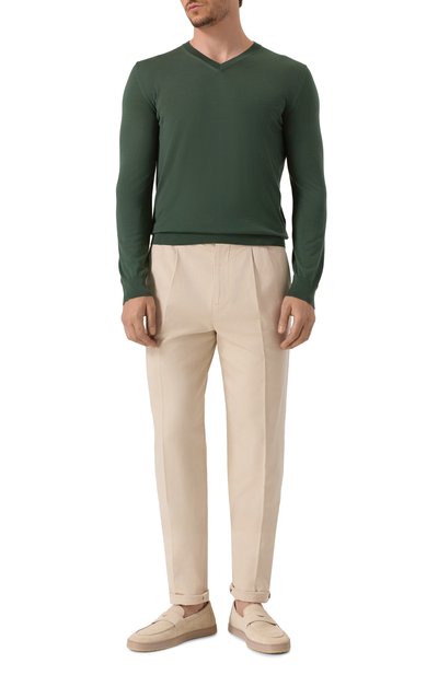 Однотонный джемпер без декора гармонично впишется в базовый гардероб. Модель с круглой горловиной выполнили из шерсти мериноса с толщиной волокон 13,5 микрон.