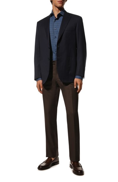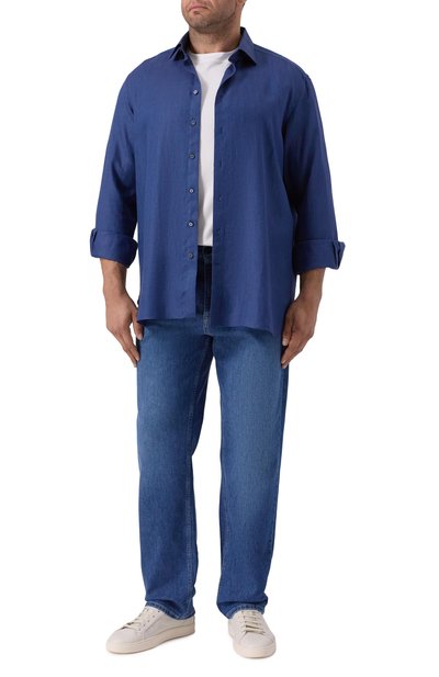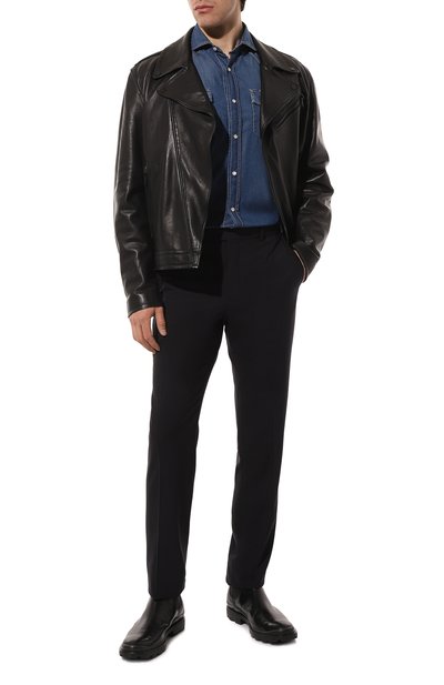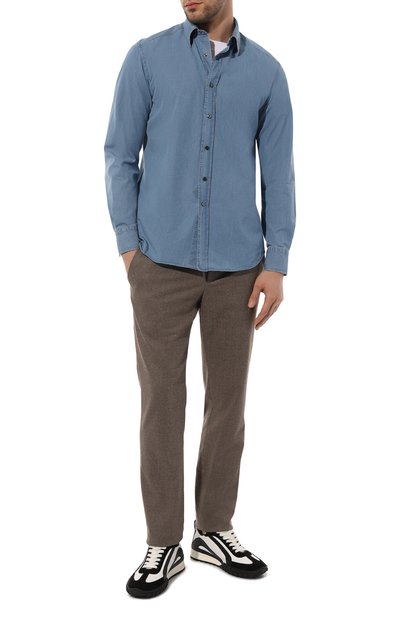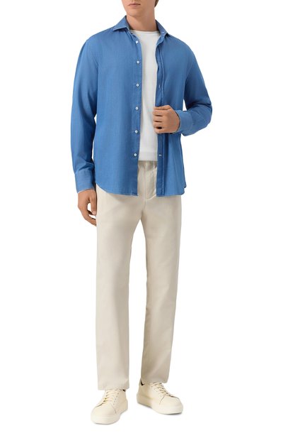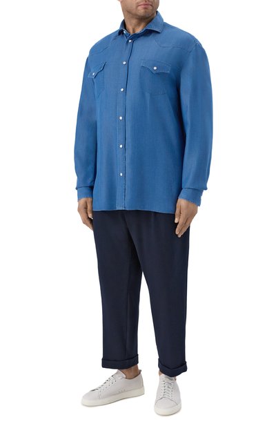 Джинсовую рубашку с фигурным низом и прямоугольными манжетами выполнили из хлопка. Модель с бантовой складкой на спинке застегивается контрастными перламутровыми пуговицами.