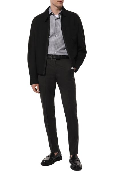 Рубашку с фигурным низом и прямоугольными манжетами сшили из хлопкового поплина в клетку виши. Приталенная модель органично впишется в повседневный гардероб.