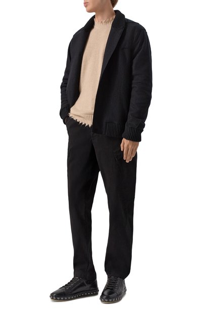 Бомбер с эластичным поясом и манжетами на потайных кнопках выполнили из стрейчевой шерсти, усиленной полиэстером. Модель, застегивающуюся молнией, украсили фирменным патчем на спинке.