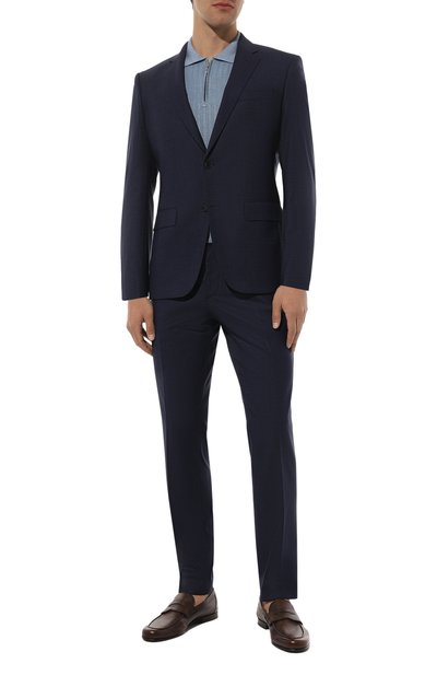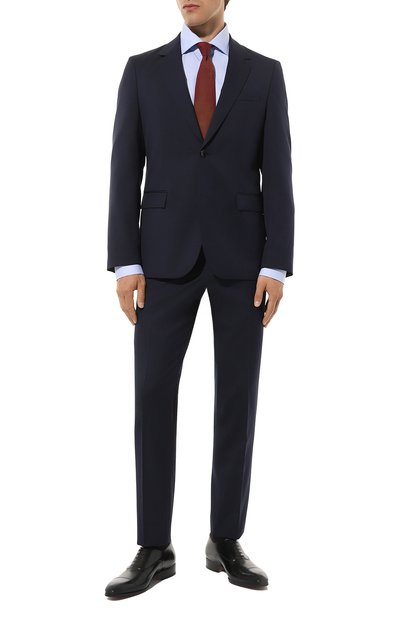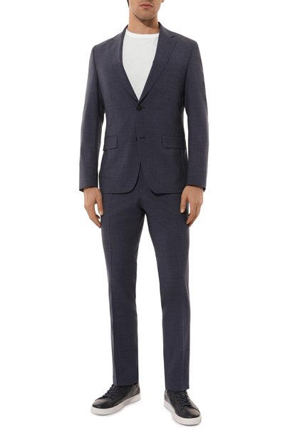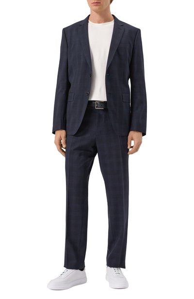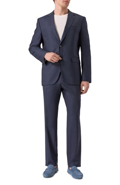 Костюм Jeckson в тонкую полоску выполнили из шерсти первого пострига с небольшим добавлением полиэстера. Пиджак с подкладом на основе вискозы дополнили двумя шлицами сзади, а также нагрудным и парой боковых карманов. У брюк со стрелками предусмотрели четыре кармана.