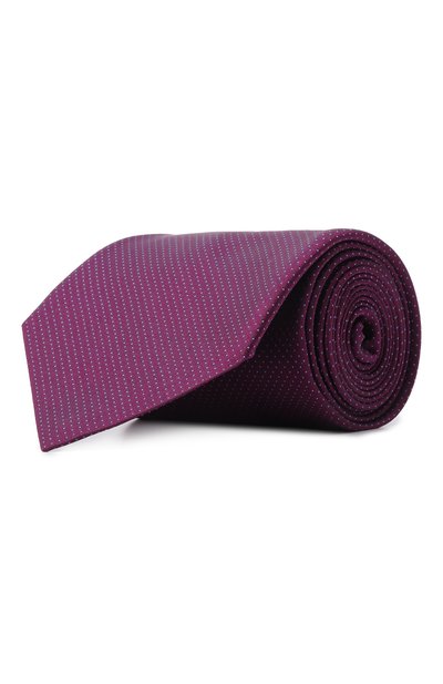 Галстук с жаккардовым микроузором выполнили вручную из шелка. Длины аксессуара хватит, чтобы завязать узлы разной степени сложности.