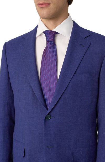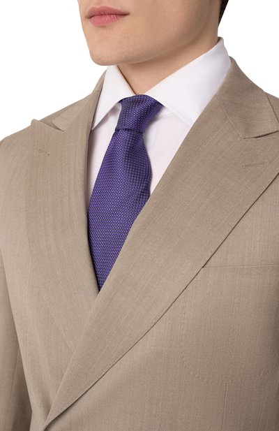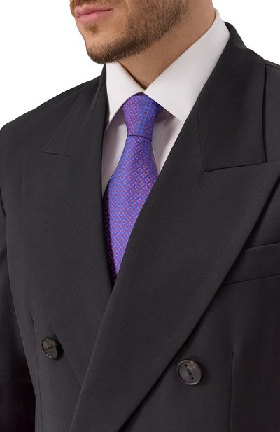 Широкий галстук, подходящий для высокого мужчины, выполнили вручную в технике семи сложений. Аксессуар из шелкового жаккарда украсили графичным паттерном.