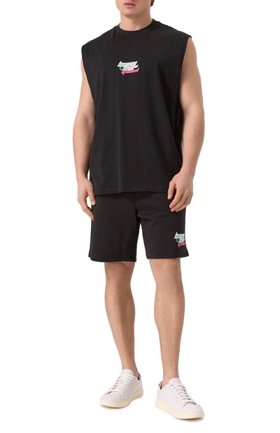 Шорты Sewalk с ложной ширинкой и широким поясом-кулиской выполнили из хлопкового трикотажа. Модель с задним и двумя боковыми карманами украсили брендированной нашивкой.