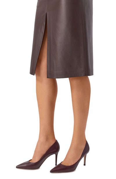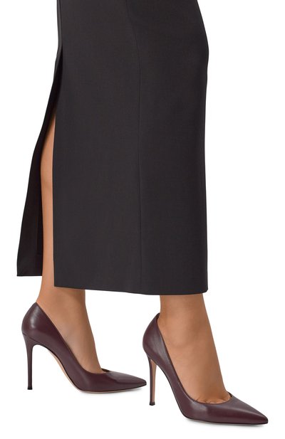 Туфли-лодочки Gianvito на высокой шпильке будут уместны как в дневном, так и в вечернем образе. Пару с неглубоким вырезом выполнили из лакированной телячьей кожи.
