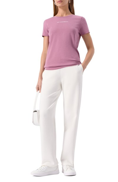 Футболку Emilie с горловиной в рубчик выполнили из хлопкового трикотажа. С обеих сторон модель украсили логотипом, дополнив более крупную версию принтом и надписью Don't call me honey.