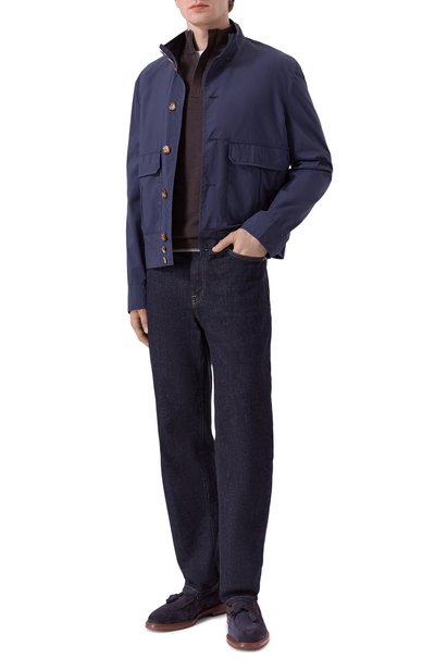 Пенни-лоферы с мокасиновым швом и традиционной перемычкой с прорезью выполнены из стираной замши, отполированной вручную. Модель с кожаной съемной стелькой установили на резиновую подошву.