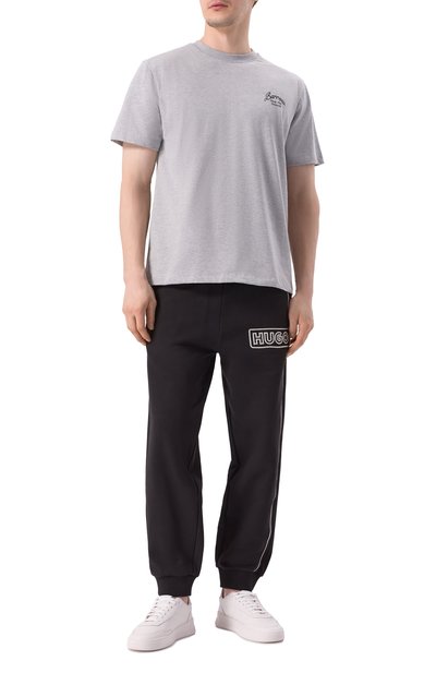 Джоггеры Nevez с тремя карманами и эластичным поясом-кулиской выполнили из хлопкового трикотажа терри. Спереди модель украсили контрастным брендированным принтом.