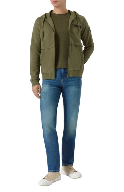 Джинсы Johan кроя Regular fit выполнили из неэластичного денима на основе хлопка, выращенного методом регенеративного земледелия. Модель с пятью карманами украсили сбоку фирменной этикеткой, а на поясе сзади – крупным патчем с логотипом.