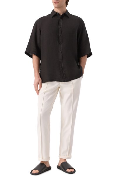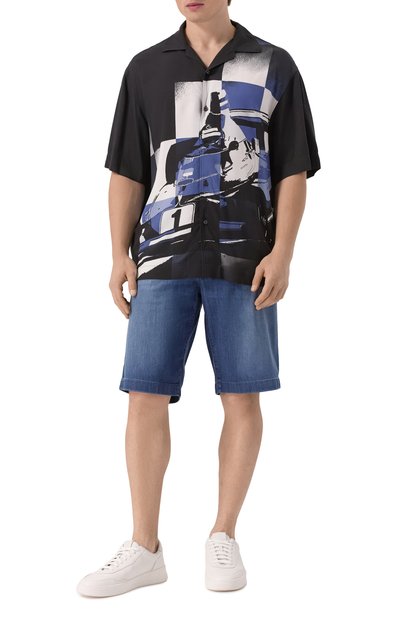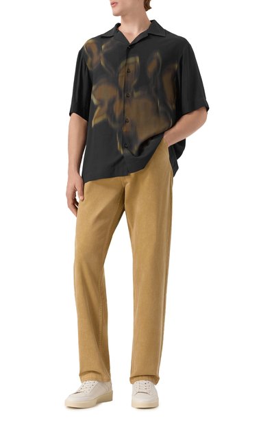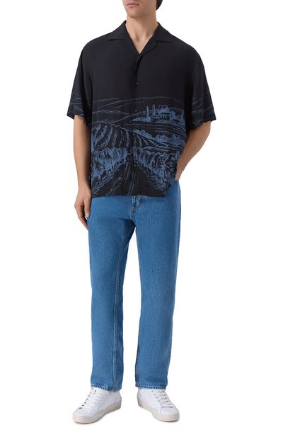 Рубашку Ellino с отложным воротником выполнили из хлопкового поплина с пиксельным паттерном в виде птиц. Модель с закругленной линией низа застегивается брендированными пуговицами.