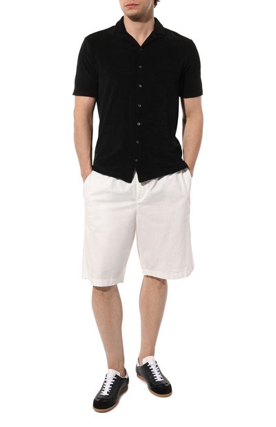 Рубашку Ellino с отложным воротником выполнили из хлопкового поплина с пиксельным паттерном в виде птиц. Модель с закругленной линией низа застегивается брендированными пуговицами.