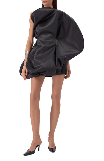 Платье-корсет Yael с высокой шлицей и потайной молнией сзади выполнили из двустороннего полиэстерового крепа. Атласная вставка с акцентированными чашечками создает иллюзию многослойности.