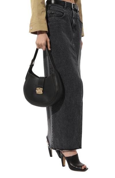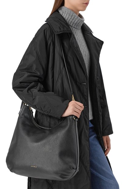 Сумку Ninon с цельнокроеной ручкой и магнитной застежкой выполнили из переработанного материала, напоминающего мелкозернистую кожу. Аксессуар с крупным контрастным логотипом спереди дополнили внутри накладным карманом.