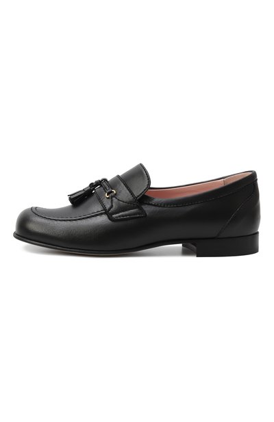 Лоферы с фактурным швом на круглом мысе выполнили из кожи. Такой же материал выбрали для перемычки с кисточкой, украшающей союзку пары с потайной резинкой.