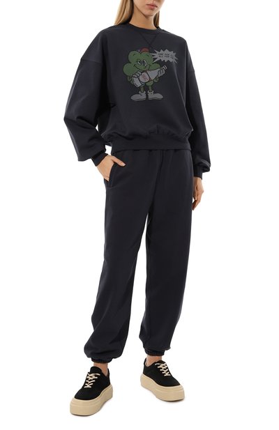 Oversize-свитшот Derissa, окрашенный в готовом виде, изготовили из футера с добавлением органического хлопка. Укороченная модель с прорезиненным логотипом спереди составит гармоничный дуэт с парными брюками.