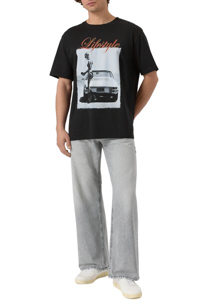 Свободную футболку с неглубокой круглой горловиной выполнили из хлопкового трикотажа. Принт на модели спереди напоминает приклеенную скотчем фотографию Брижит Бардо.