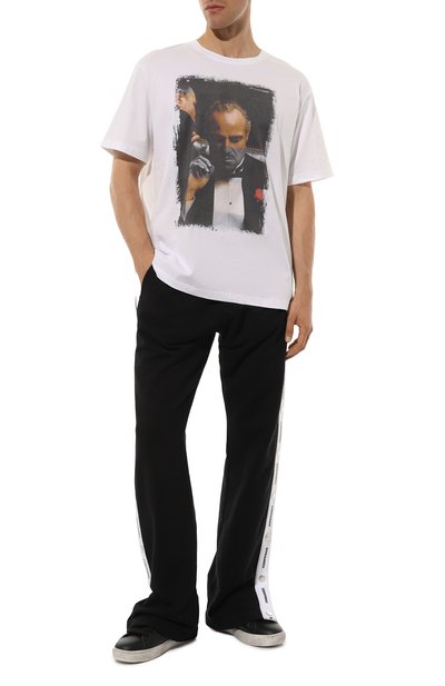 Футболку с круглой горловиной в рубчик выполнили из хлопкового джерси. Модель украсили коллажем, в котором современное фото соединили с фрагментом картины Яна Вермеера «Девушка с жемчужной сережкой».