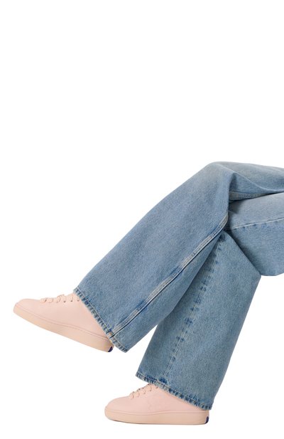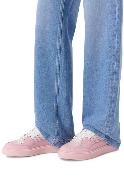 Кожаные кроссовки Matrix, дополненные петлями спереди и сзади, выполнили из текстильной ленты в клетку Burberry Check. Модель с тройными строчками, подчеркивающими фигурные детали, украсили вышитой эмблемой Equestrian Knight.