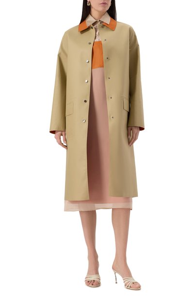Клетчатое платье с супатной застежкой выполнили из хлопкового поплина. Воротник-стойка застегивается двумя смещенными вбок пуговицами с выгравированной эмблемой Equestrian Knight.