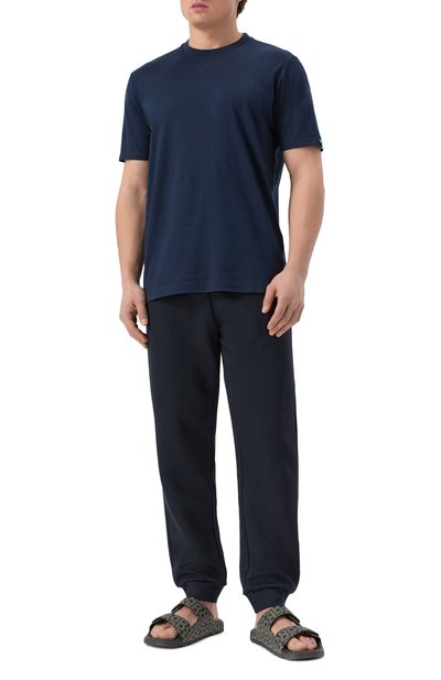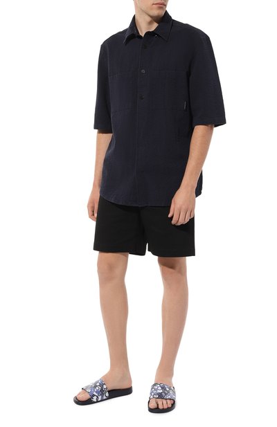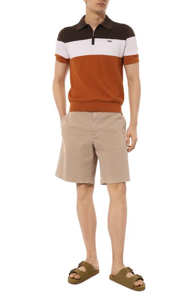 Шлепанцы с двумя регулируемыми ремешками выполнили из ткани с мотивом пейсли. Модель с формованной пробковой стелькой дополнили резиновым рифленым протектором.