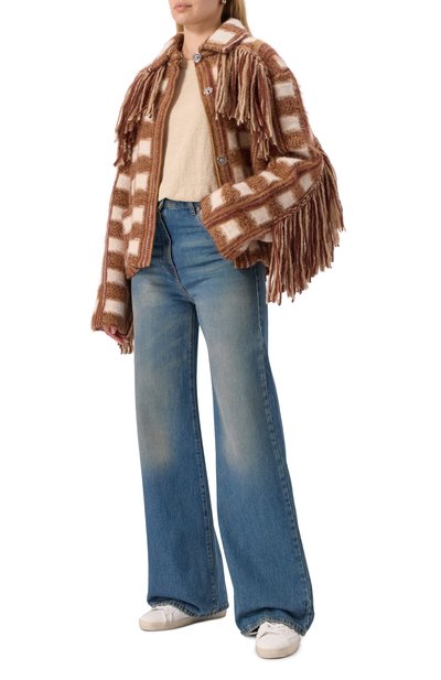 Футболку Mimma выполнили из блестящего эластичного джерси на основе полиэстера. Предлагаем создать непринужденный образ с принтованными брюками и рубашкой.