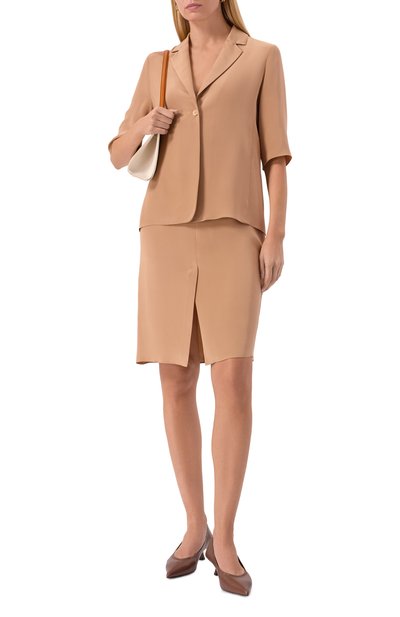 Блузу Berma со спущенной линией плеч и боковыми разрезами выполнили изо льна. Рукава модели дополнили отворотами, которые зафиксировали ремешками.