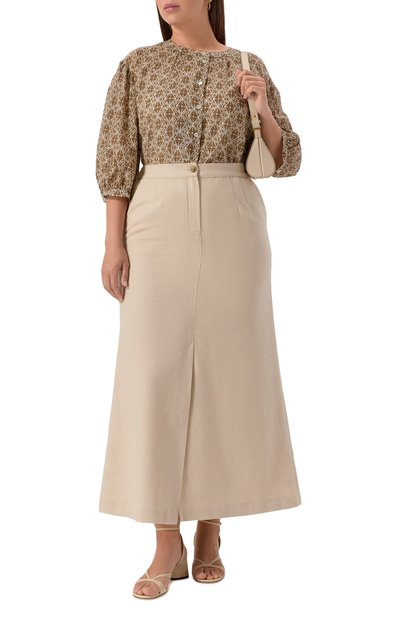 Рубашку Florida с боковыми разрезами и удлиненной спинкой выполнили из льняного канваса оттенка Antique Rose. Модель дополнили супатной застежкой на пуговицы.