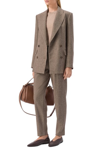 Брюки Siamese с двойными защипами и стрелками дополнили боковыми карманами. Для изготовления модели использовали льняной твил. В комплекте — регулируемый ремень с брендированной пряжкой фастекс.