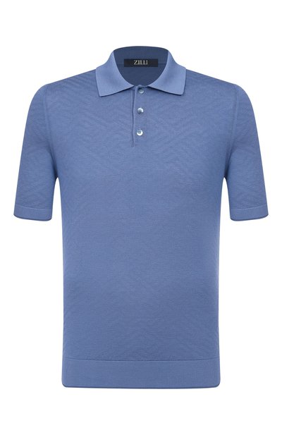 Поло из микса шелка, хлопка и льна украсили сплошным геометрическим узором. Эластичные манжеты и пояс модели декорировали тонкими полосами более темного оттенка.