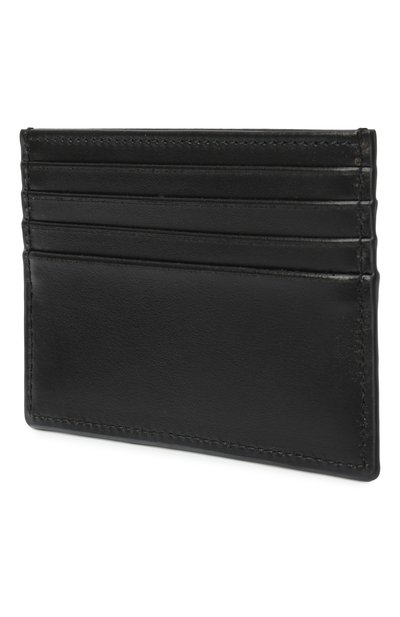 Футляр для кредитных карт выполнили из зернистой кожи. В аксессуаре с тисненым логотипом предусмотрели по четыре слота с каждой стороны и карман для чеков посередине.