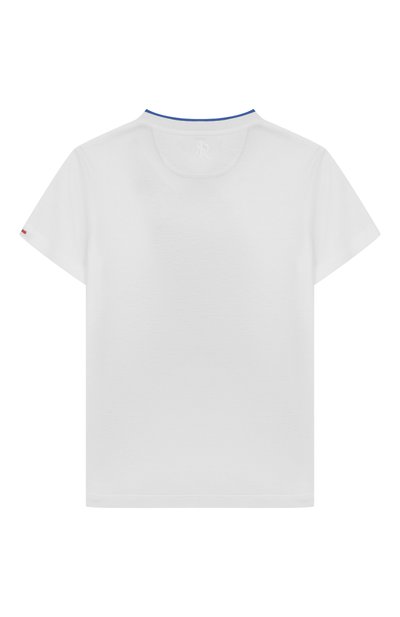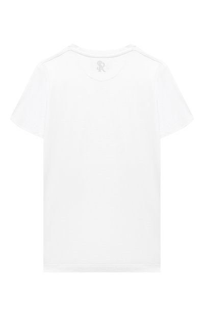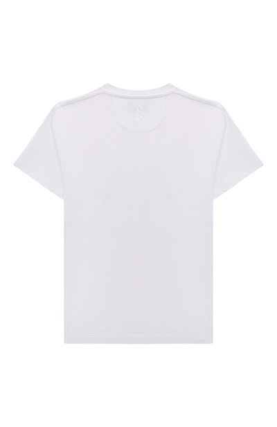 Футболку с эластичной круглой горловиной выполнили из джерси на основе модала и хлопка. Спереди и сзади расположили фирменные монограммы: в тон на спинке и контрастной спереди, которой вторят вставки на рукавах.