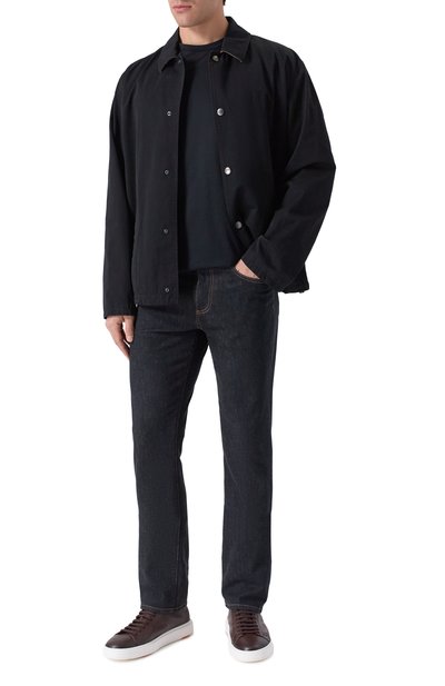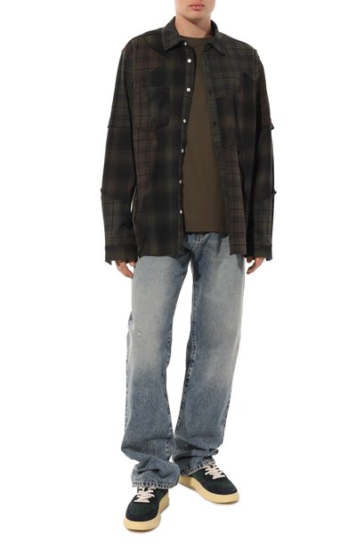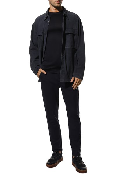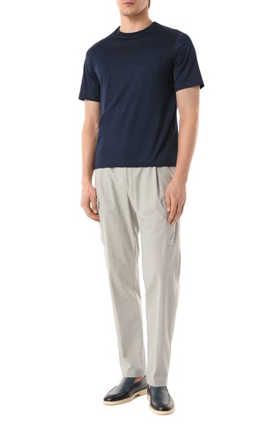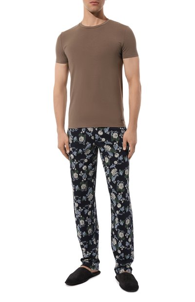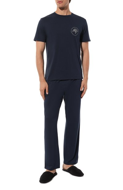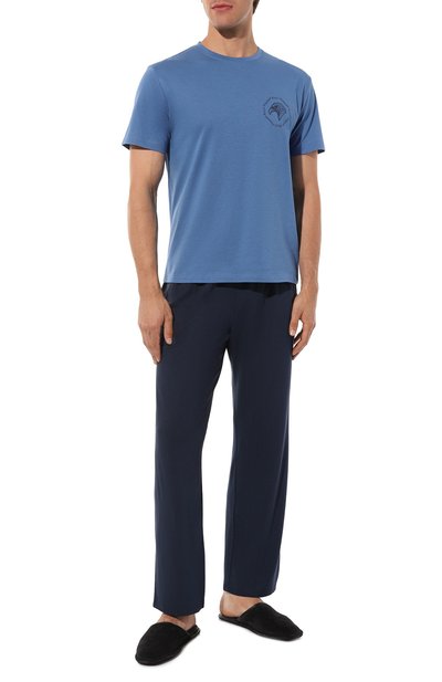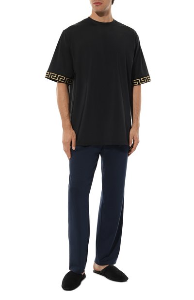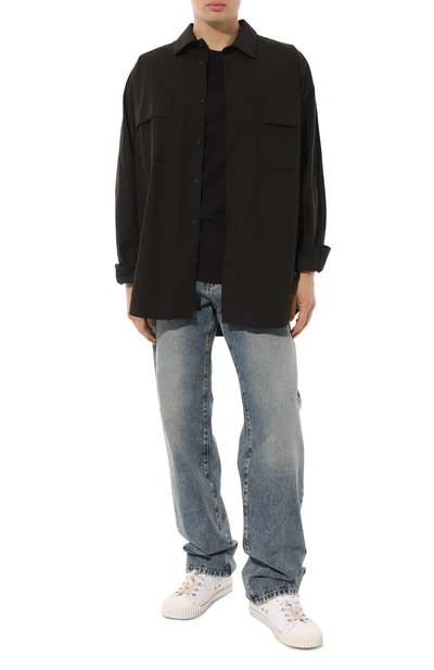 Футболку выполнили из джерси на основе модала и хлопка. Пояс изделия спереди дополнили нашивкой с контрастной символикой бренда, а под горловиной сзади разместили логотип марки в тон.