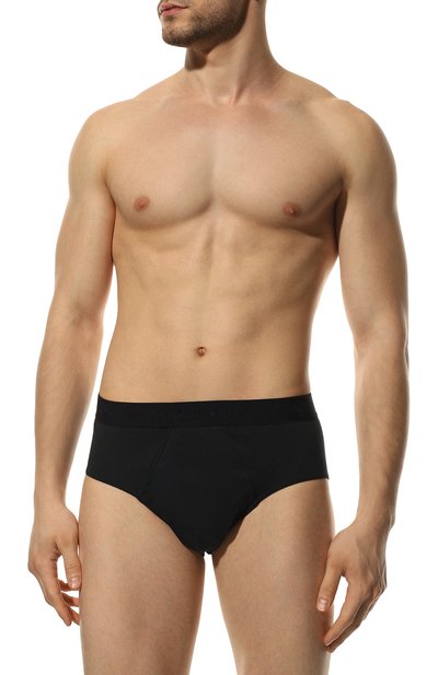 Брифы с плоским кантом и гульфиком выполнили из стрейчевого хлопкового джерси. Пояс украсили контрастным жаккардовым логотипом.