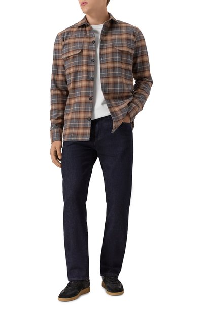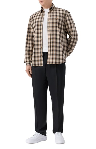 Клетчатую рубашку Roy прямого кроя сшили из хлопковой фланели. Модель с воротником button down и нагрудным карманом застегивается фирменными пуговицами с тремя отверстиями.