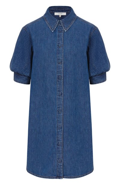 Мини-платье Play выполнили из хлопкового денима шамбре с добавлением переработанного сырья. Модель оттенка Antonia застегивается обтяжными пуговицами.