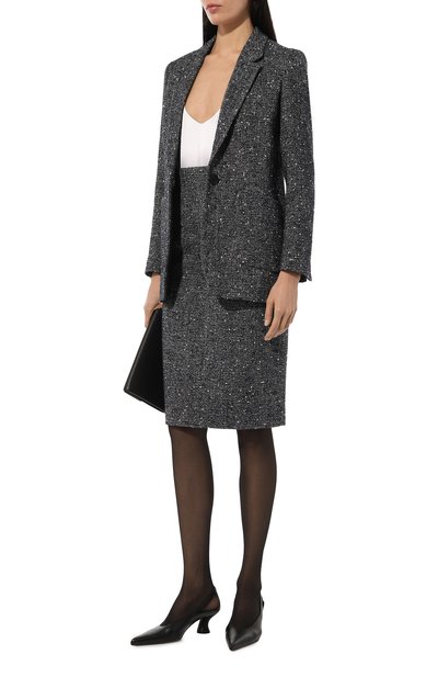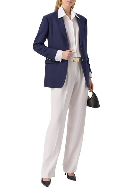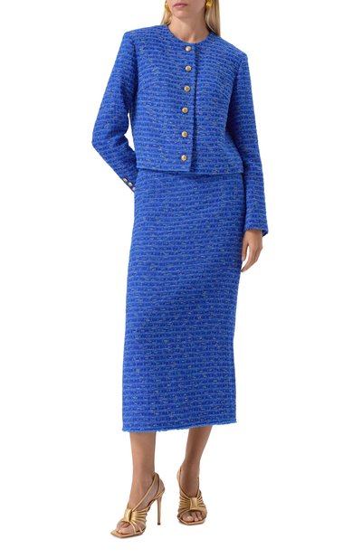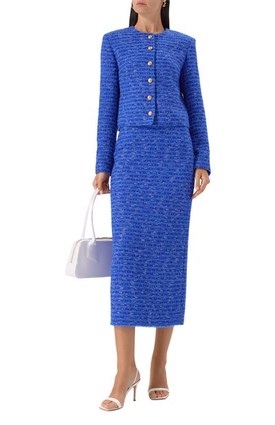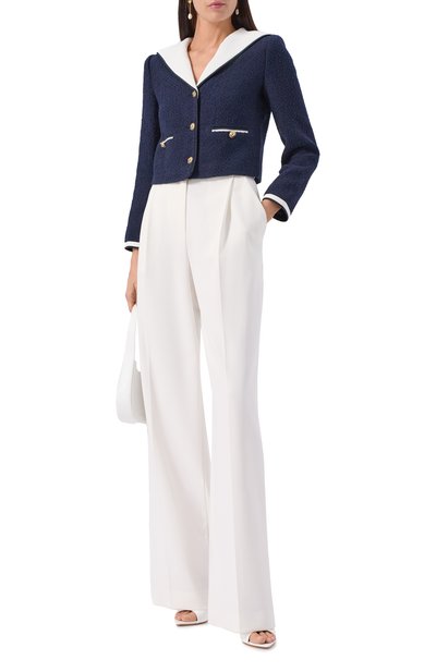 Короткий жакет с двумя карманами выполнили из хлопкового твида. Роль акцента у изделия отдали пуговицам-полусферам. Предлагаем создать комплект с парными шортами.