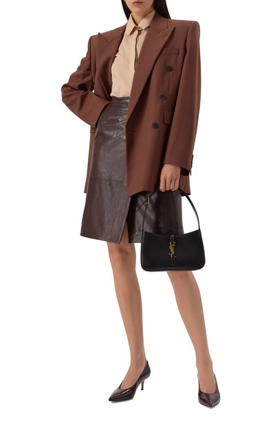 Туфли Amelia с зауженным мысом и глубоким вырезом выполнили из гладкой телячьей кожи. Лаконичную модель поставили на каблук kitten heel в тон.
