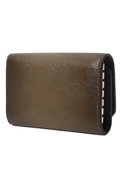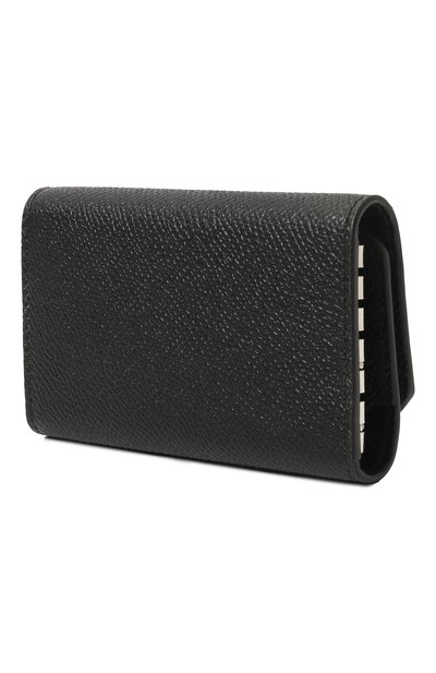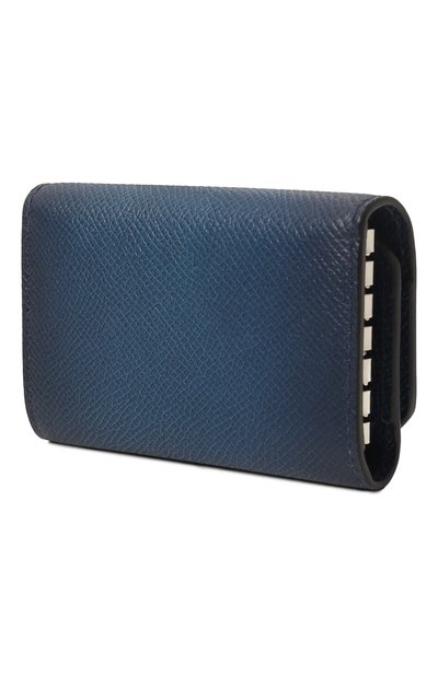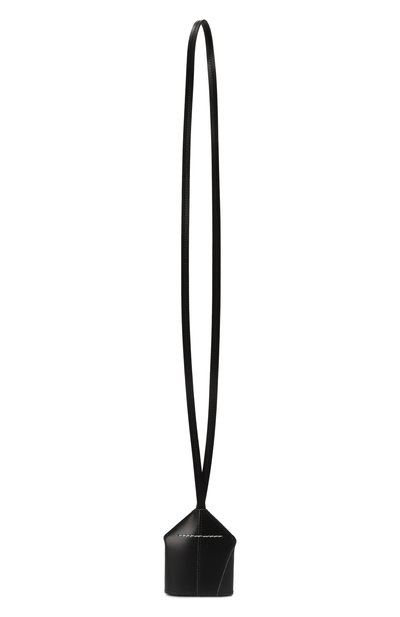 Футляр с длинным узким ремешком выполнили из зернистой кожи. Модель украсили спереди логотипом бренда, а сзади – четырьмя фирменными стежками.