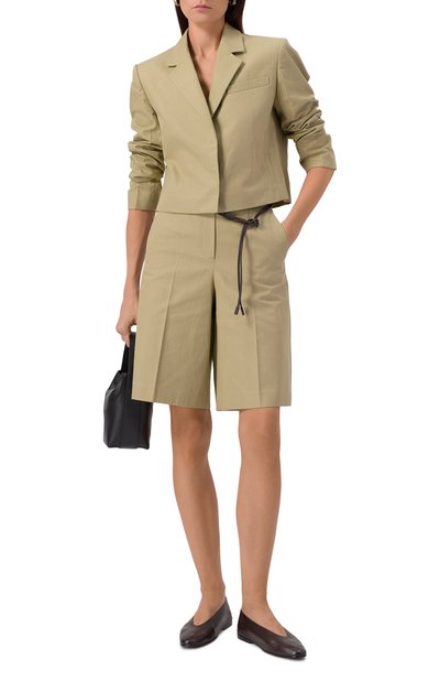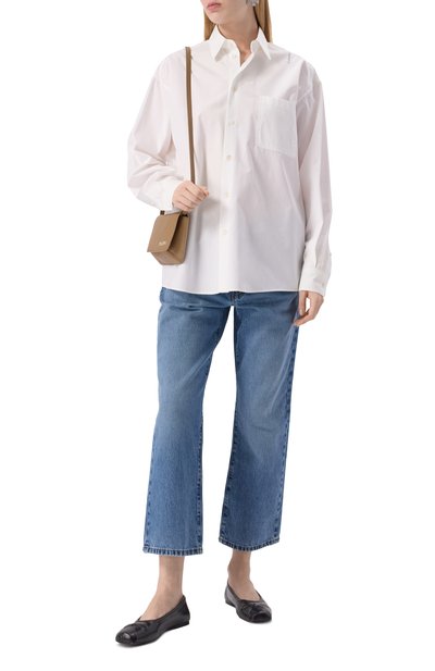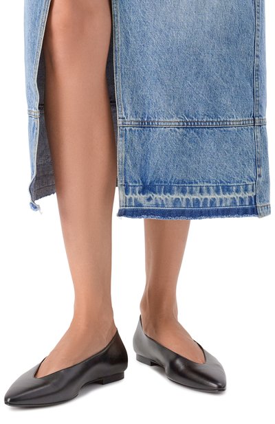 Балетки Scivolo выполнили из мягкой мелкозернистой кожи. Модель с миндалевидным мысом поставили на тонкую кожаную подошву с едва заметным плоским каблуком.