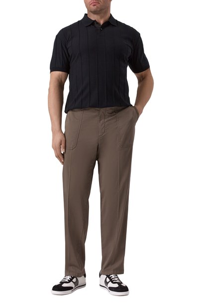 Брюки-карго Metis со стрелками и тремя парами карманов выполнили из шерсти с небольшим добавлением эластана. Пояс изделия дополнили эластичной вставкой сзади.