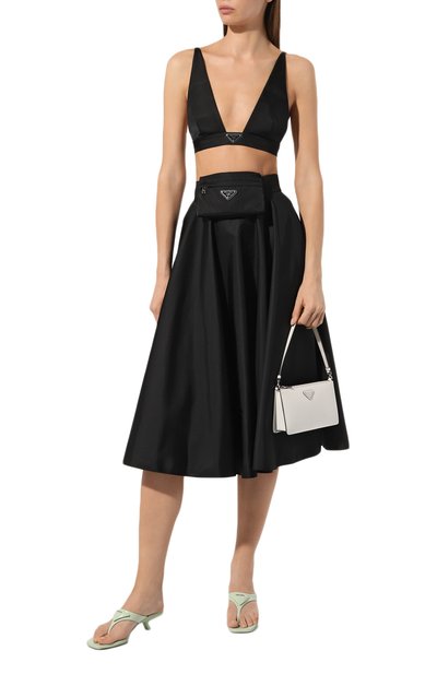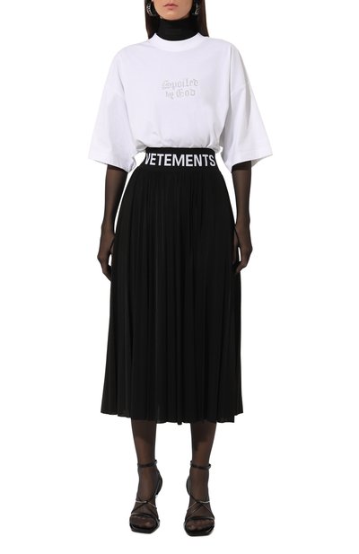 Миди-юбка со складками сшита из тонкой вискозы. Модель с фигурным отворотом дополнена клетчатой вставкой с эластичным поясом и бантом.