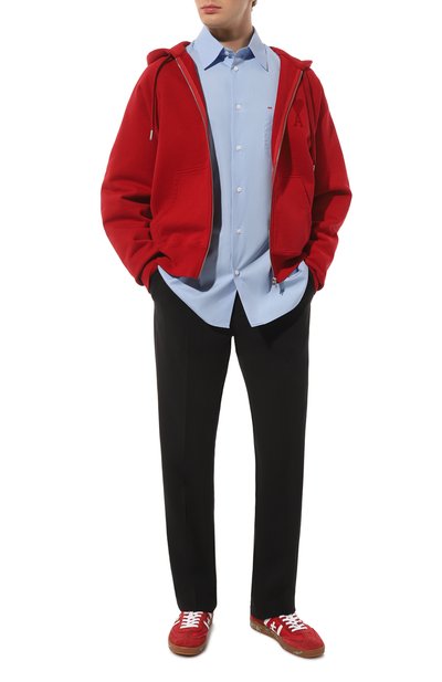 Рубашку кроя Regular fit выполнили из хлопкового поплина. Модель украсили вышитым изображением гуся на груди и логотипом на спинке.