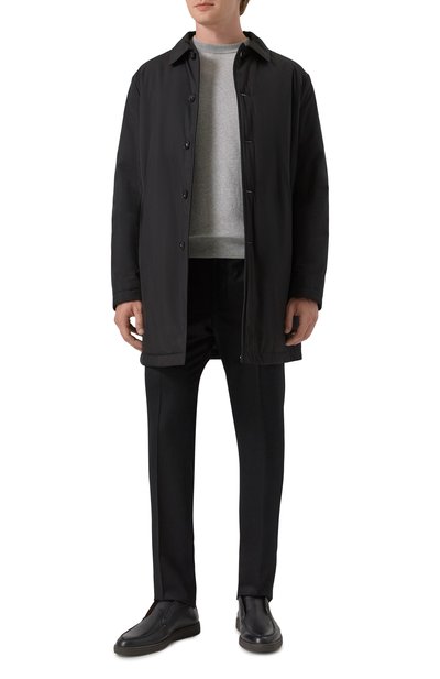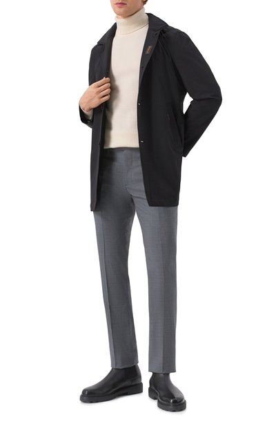 Плащ Jared со шлицей сзади и патами на рукавах дополнили двумя внутренними и парой внешних карманов. Модель из ткани с водоотталкивающей мембраной Gore-Tex® застегивается молнией, скрытой под штормовой планкой с потайными кнопками. Под воротником — светоотражающий кант.