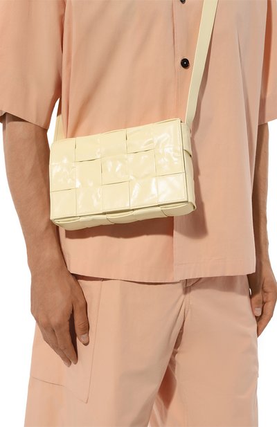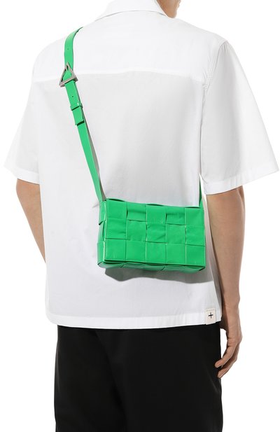 Сумку Arco с регулируемым плечевым ремнем дополнили двумя внутренними карманами. Аксессуар сплели в технике intreccio из вощеного хлопкового текстиля, сформировав узор в шахматную клетку.