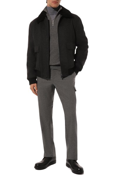 Для изготовления меланжевой водолазки использовали трикотаж на основе полиэстера и шерсти первого пострига. Ворот модели украсили контрастным логотипом Jil Sander+.