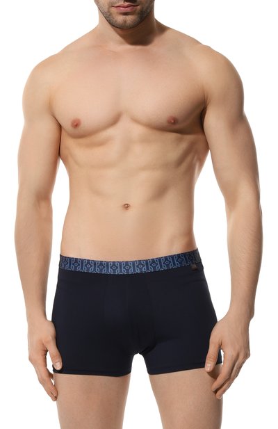 Для изготовления облегающих боксеров с плоскими швами использовали эластичный хлопковый трикотаж. Модель дополнена поясом-резинкой с жаккардовым логотипом.