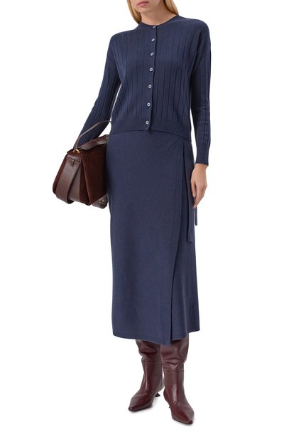 Кардиган Aria с рифлеными манжетами, поясом и горловиной украсили жаккардовым узором «аргайл». Модель из шерсти, сертифицированной RWS, застегивается пуговицами из искусственного рога.