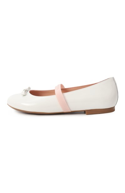 Для изготовления балеток на тонкой подошве использовали гладкую кожу и текстиль, напоминающий стриженую овчину. Модель с бантом на союзке фиксируется на ноге узким ремешком с пуговицей.