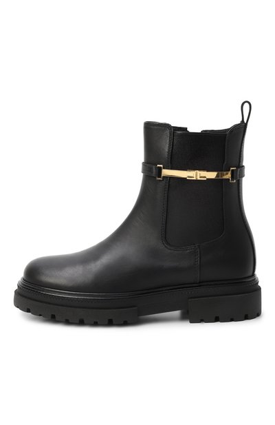 Для изготовления челси использовали крупнозернистую кожу. Модель с эластичной вставкой сбоку дополнили молнией. Накладку с петлей сзади украсили контрастным логотипом.