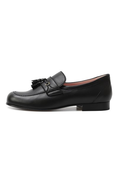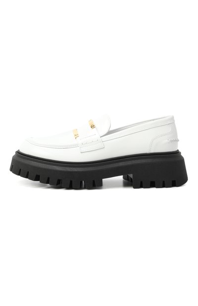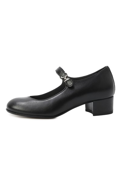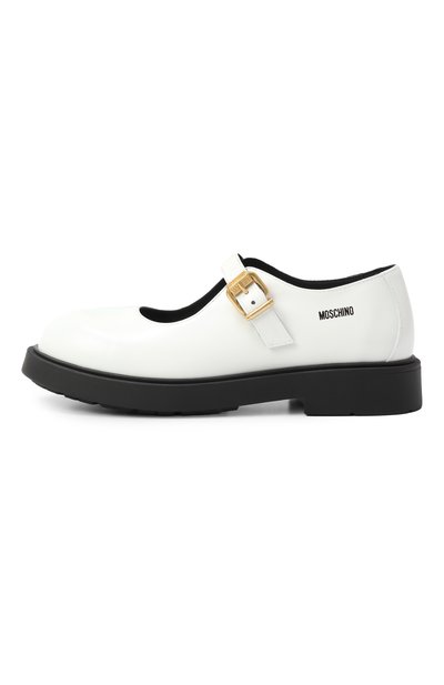 Туфли на контрастной подошве из термопластичной резины выполнили из гладкой кожи. Сбоку модель декорировали логотипом марки, которому вторит брендированная деталь, украшающая пряжку на регулируемом ремешке.